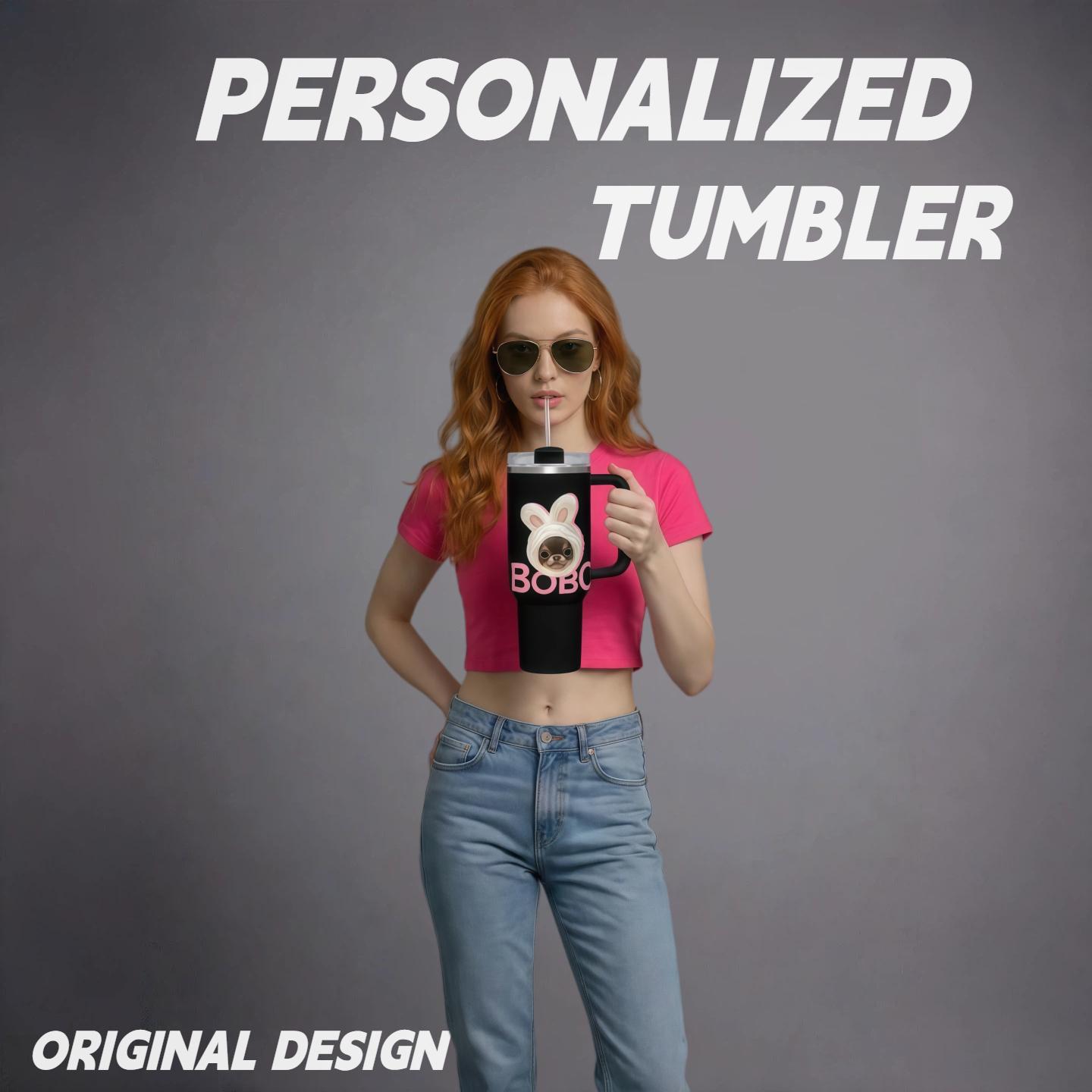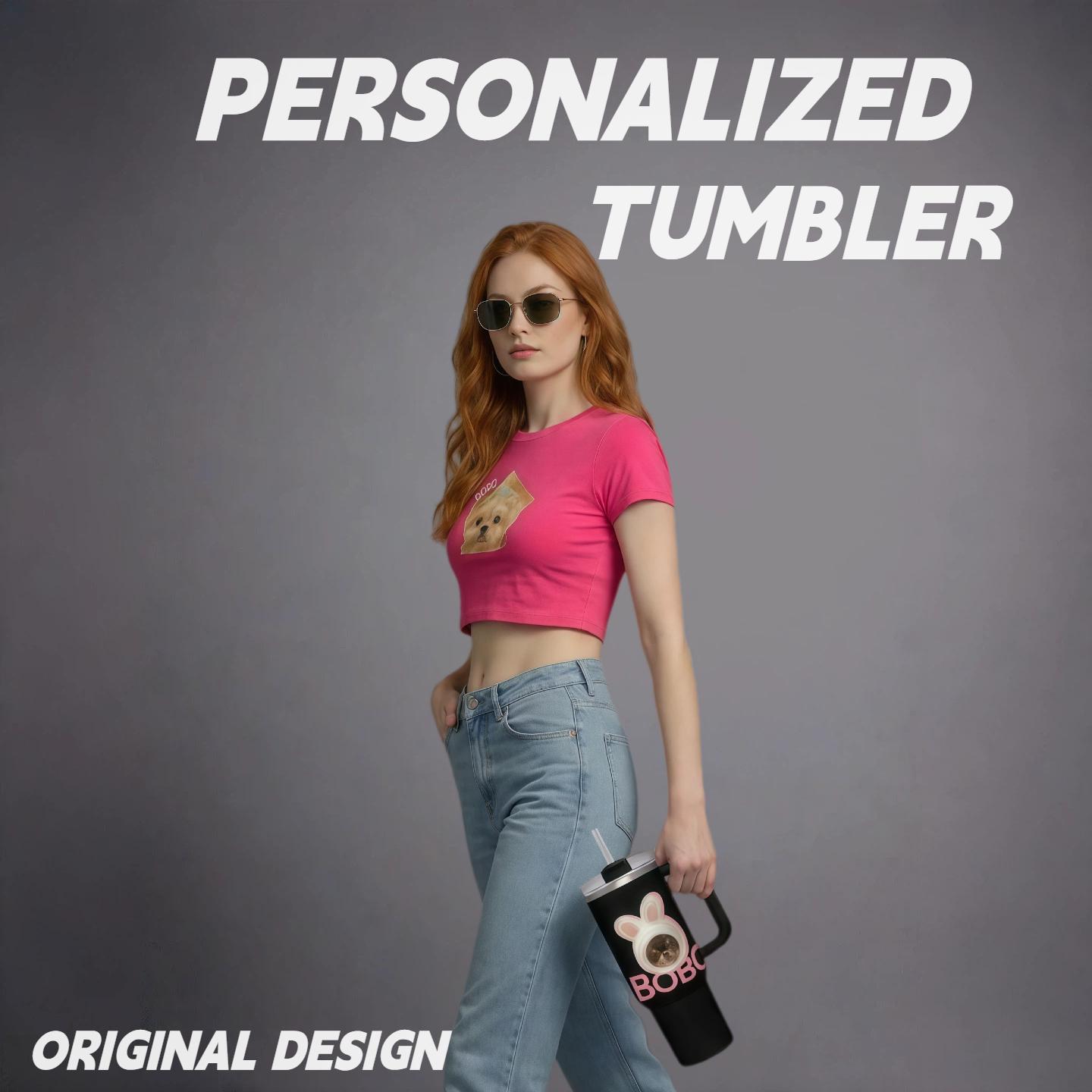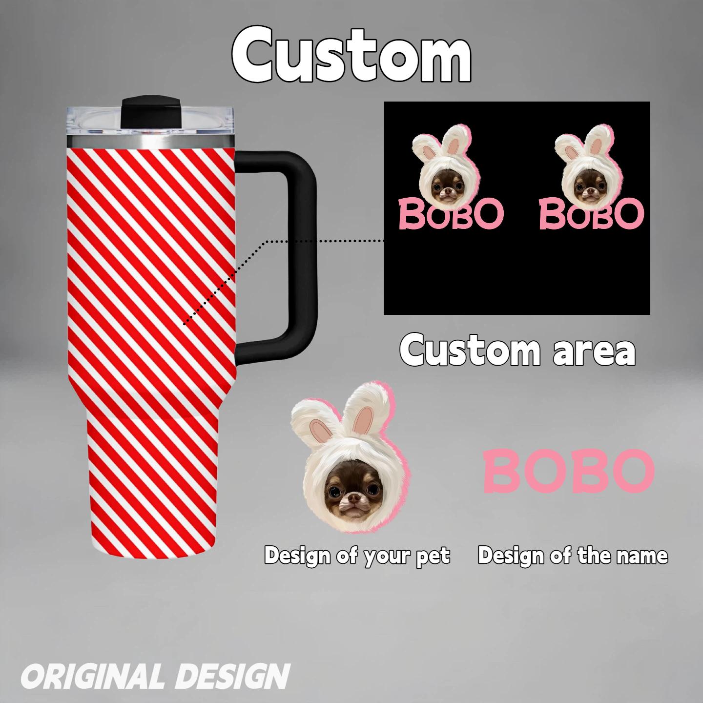 Custom Pet Photo Tumbler with Lid & Straw, Personalized Dog Cat Picture Cup Insulated Stainless Steel Travel Mug Cute Gift for Pet Lovers Coffee Iced Drink Cup